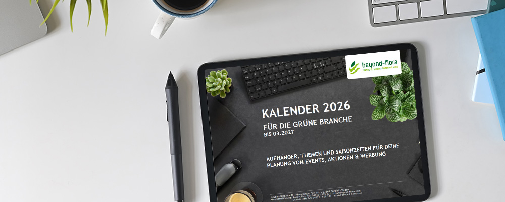 Unser Social Media-Kalender 2026 – frisch überarbeitet, mit KI-Prompts für schnelle Ideen und Posts speziell für die grüne Branche. Mit über 350 Themen-, Aktions- und Feiertagen. So lässt sich das Jahr ganz leicht planen.