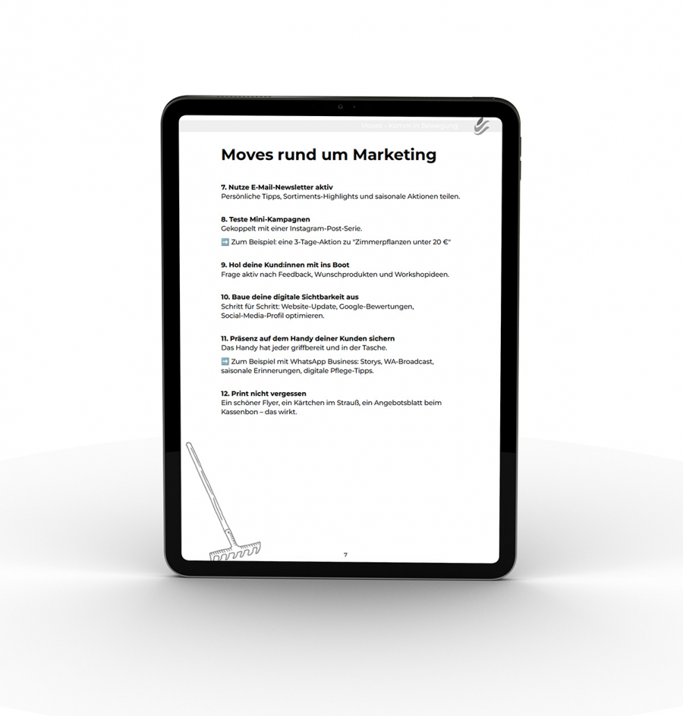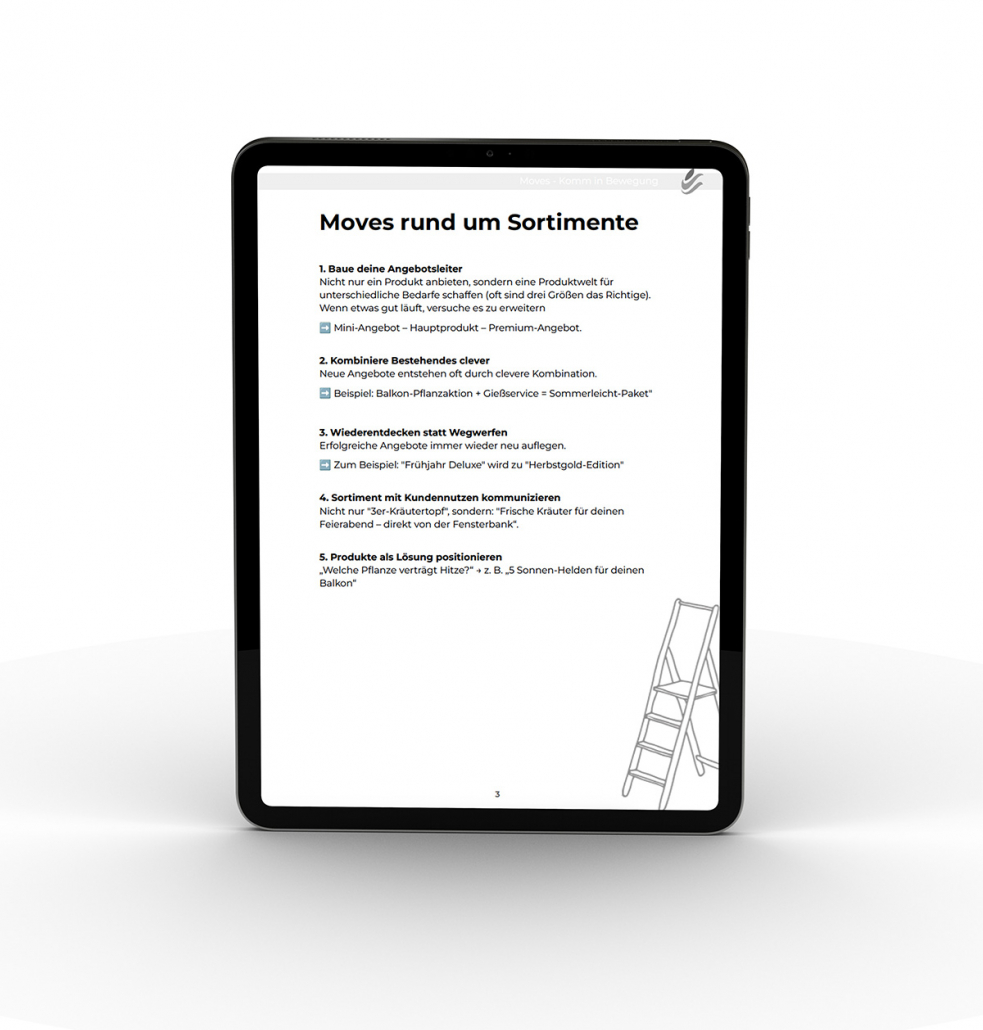 „Endlich mal konkrete Tipps, die man sofort ausprobieren kann. Das PDF hat mir gleich zwei Ideen für unser Sommer-Sortiment geliefert.“